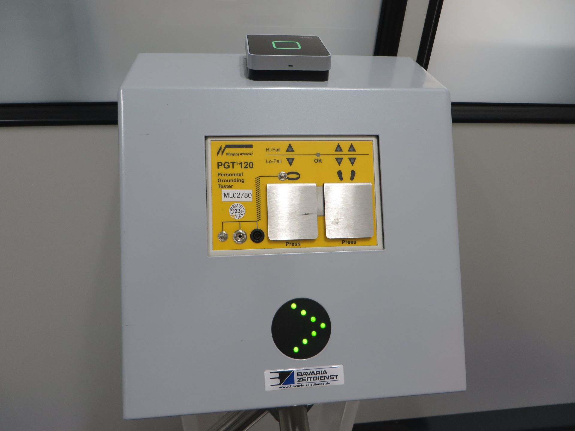 Drehsperre mit eingebautem Modul für den ESD-Test (Personnel Grounding Test). Platzsparend, kompakt und formschön. Gewährt den sicheren Zugang zu ESD-Schutzzonen. Eine Kampfansage gegenüber bestehenden ESD-Konkurrenzprodukten mit getrennten, aufgesetzten und zusammengebastelten Gehäusen für Drehsperre und ESD-Modul.