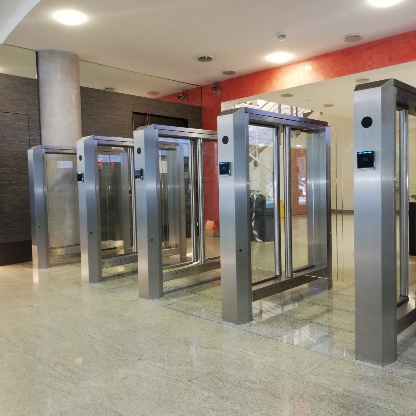Personenvereinzelung für den ästhetisch anspruchsvollen Innenbereich. Schlankes und formschönes Design mit Acrylglas-Abdeckungen, breite Farbpalette verfügbar. Einheitliche Gehäusebreite von 200 mm und Standardhöhe 1025 mm. Komfortable, berührungslose und barrierefreie Durchgangsbreite von 600 mm bis 1000 mm, Sensoren überwachen den Durchgangsbereich.